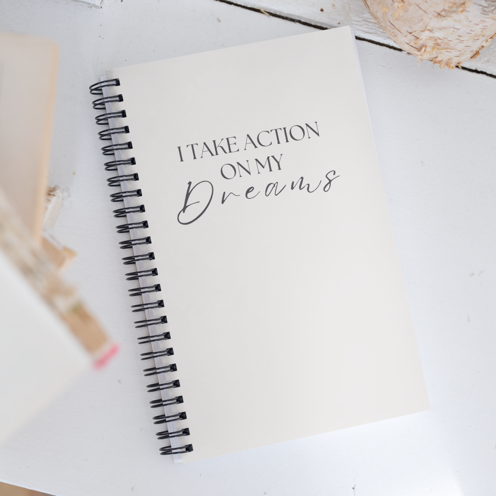 "I Take Action on my Dreams" Cream Spiral Notebook